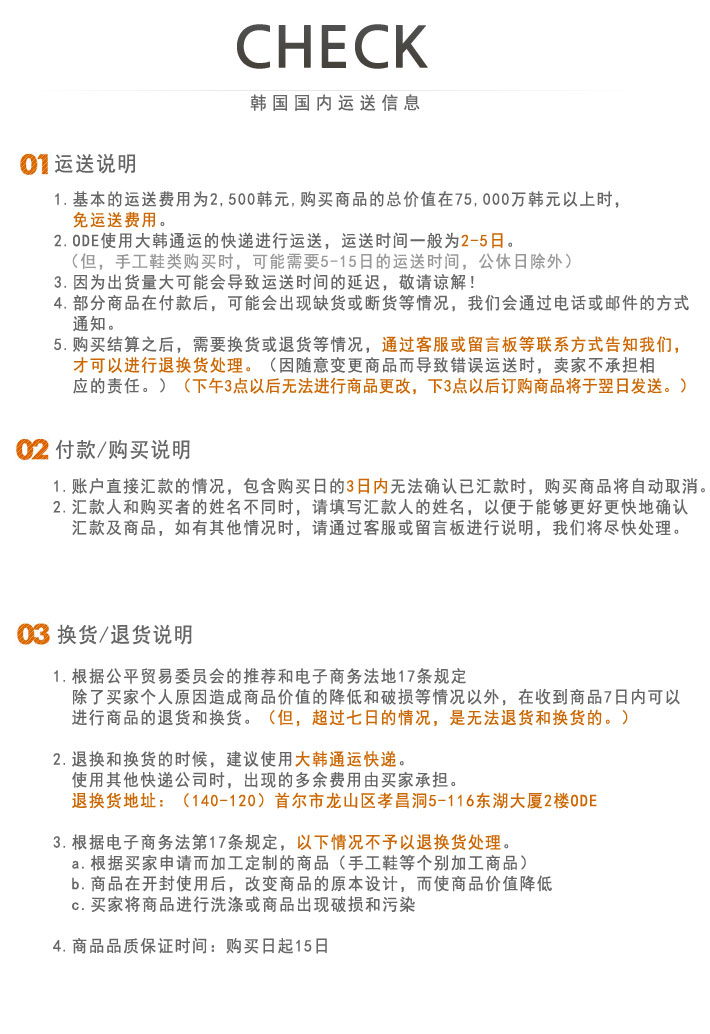(在没有点选“海外运送” 时,将自动默认为韩国国内