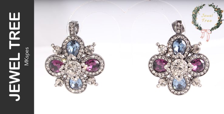 高贵四叶水晶耳环
