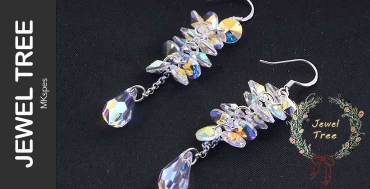 水珠吊坠水晶串联耳环